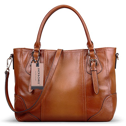 Best Seller! Jack&Chris Large Practical Women Genuine Leather Tote Satchel Shoulder Handbags, SF8048Brown Review